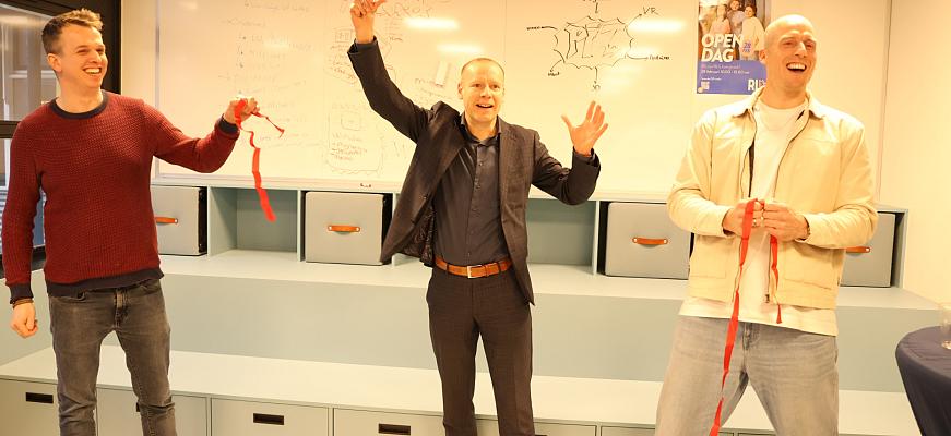 Bestuurder (lid CvB) van Stichting Rijnlands Lyceum, dhr. Verheus opende officieel het lokaal samen met de docenten dhr. Persoon en dhr. Stad. De opening werd samen met leerlingen, docenten en externe genodigden gevierd.